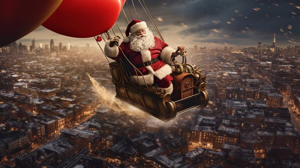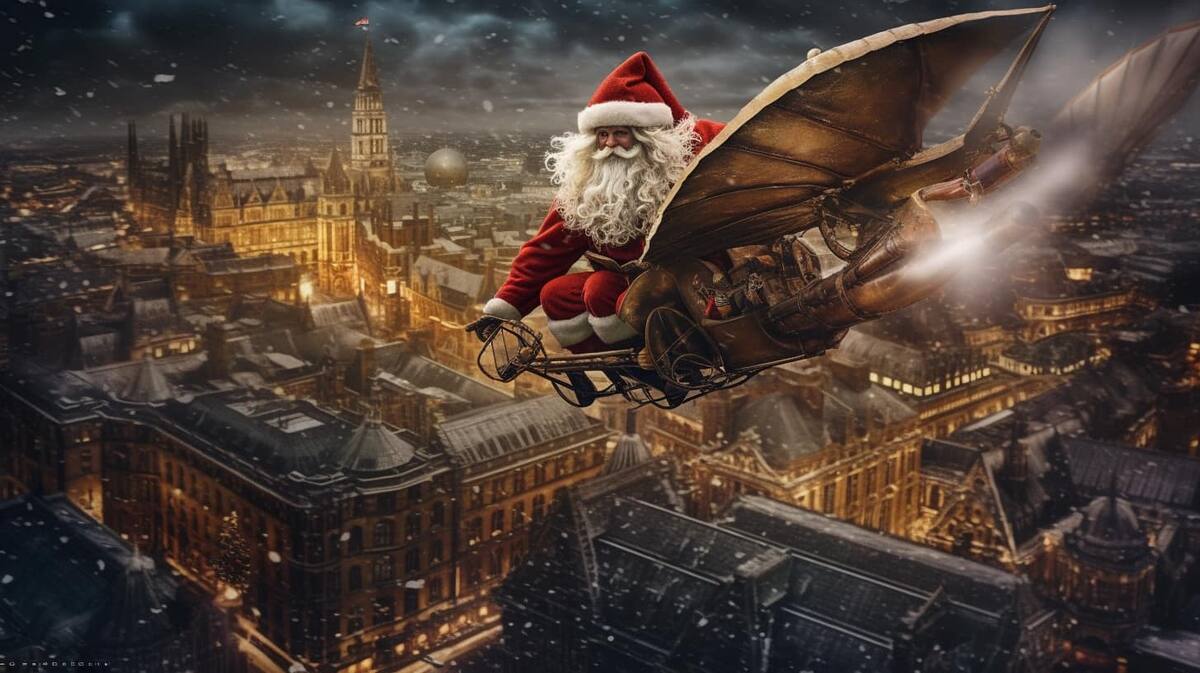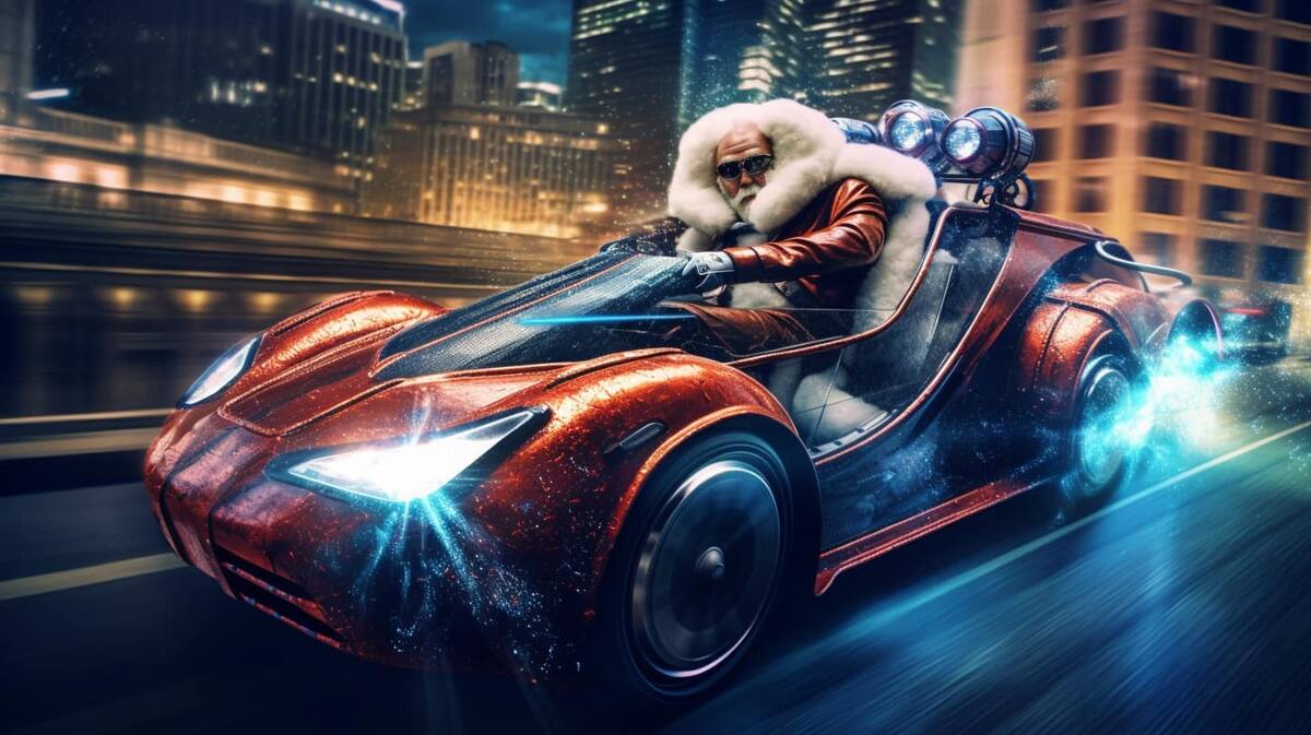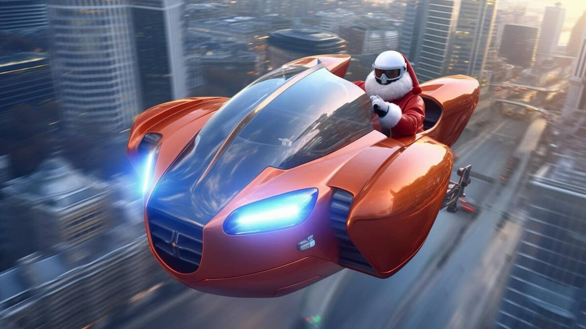 A través de Facebook, en el grupo oficial de Midjourney, el usuario César Padilla mostró cómo Santa Claus prueba distintos métodos de transporte para “hacer sus entregas más rápidas”.