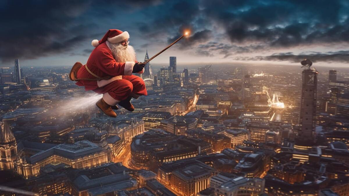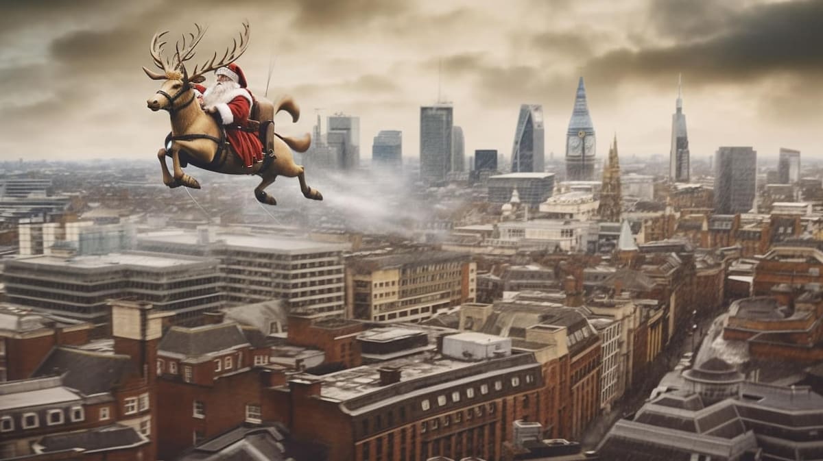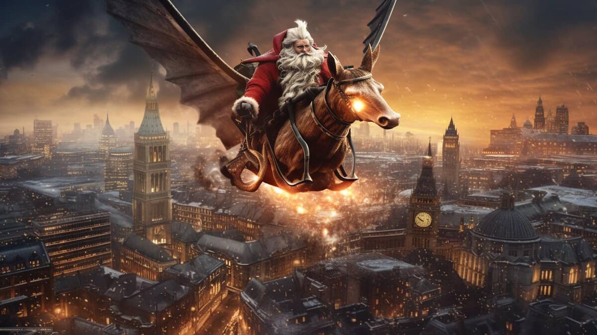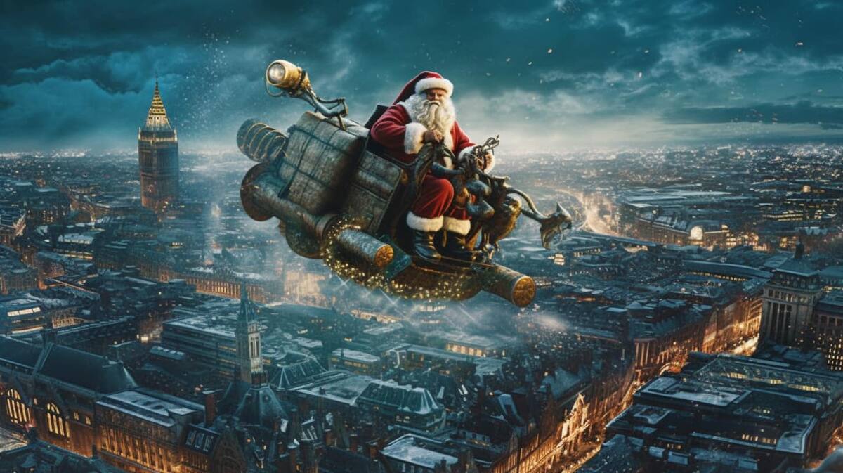 A través de Facebook, en el grupo oficial de Midjourney, el usuario César Padilla mostró cómo Santa Claus prueba distintos métodos de transporte para “hacer sus entregas más rápidas”.