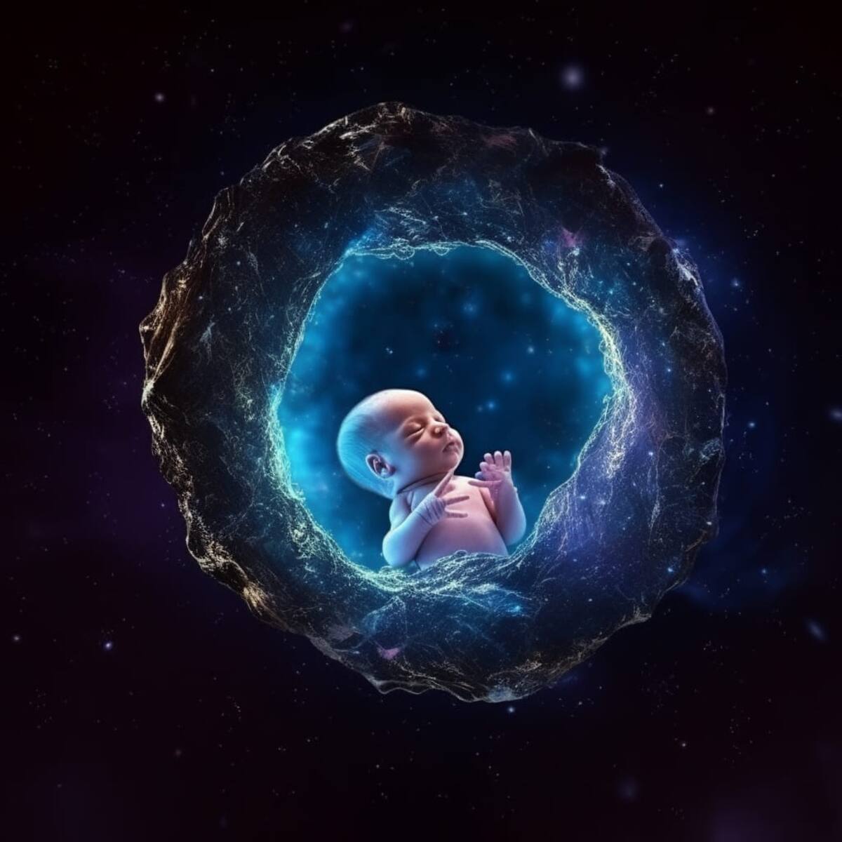Las imágenes creadas por la inteligencia artificial muestran cómo una mujer, ya adulta mayor, está sobre su cama y deja lo que sería su alma. Luego se va al universo y ahí se convierte en un bebé que vuelve a la tierra por medio de un parto. Las imágenes son impresionantes y generan una sensación de asombro y reflexión.