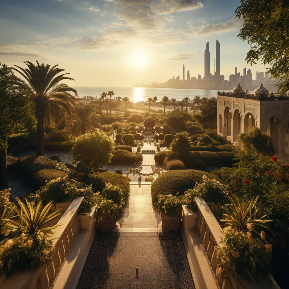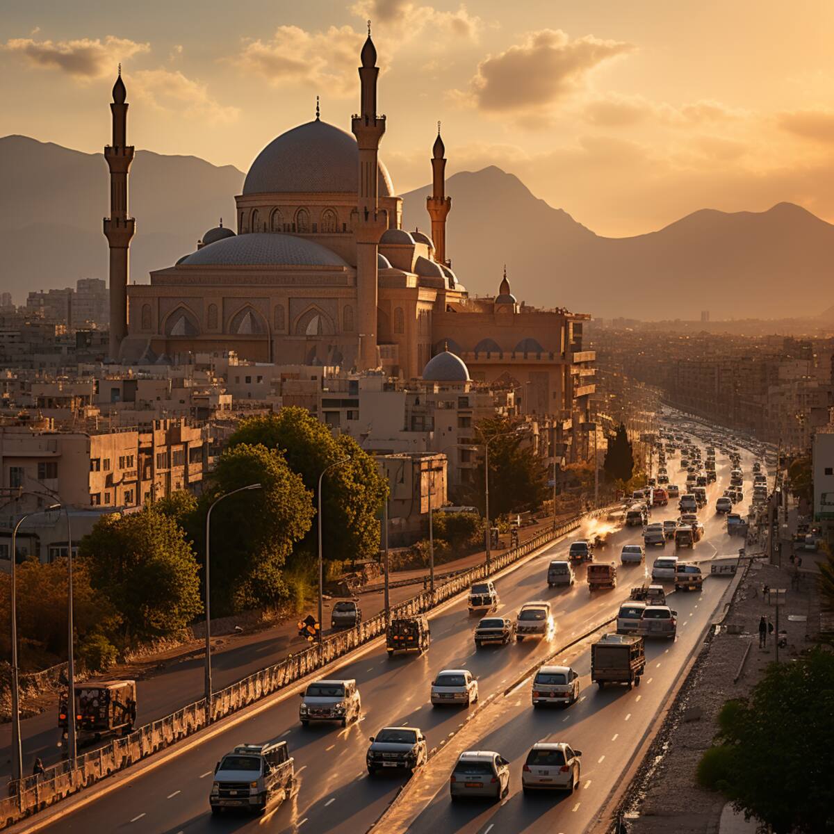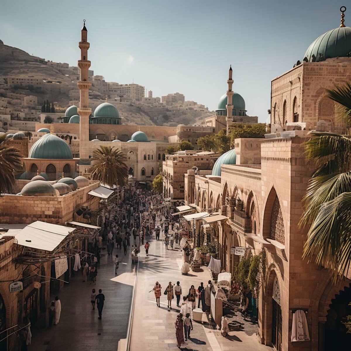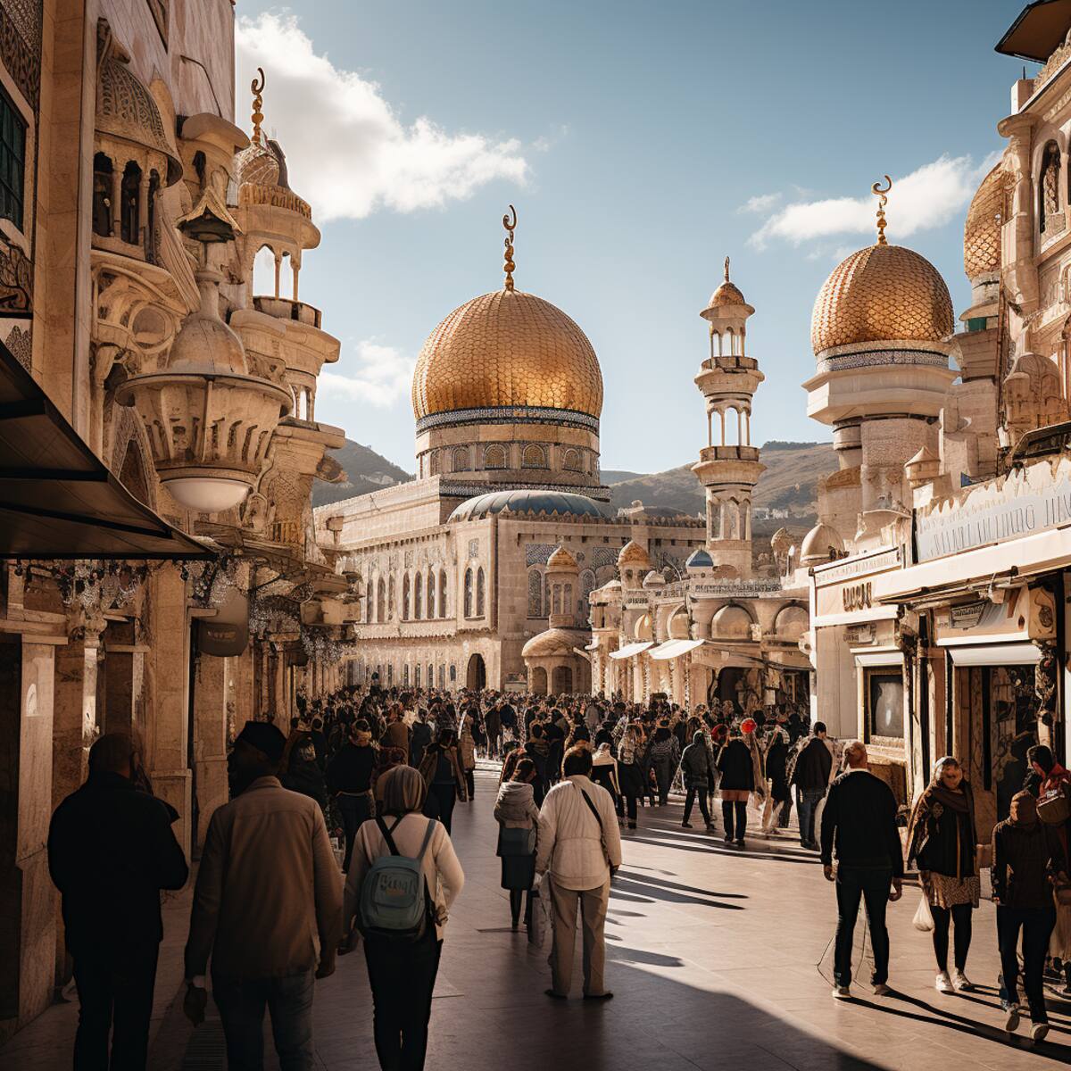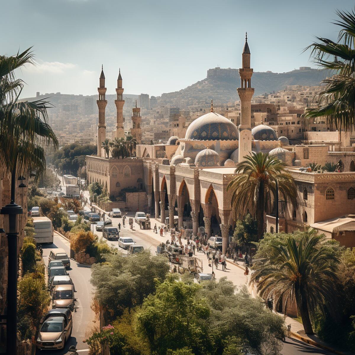 Un país de Oriente Medio con ciudades donde lo antiguo y lo moderno conviven, con mezquitas, iglesias y sinagogas que se alzan una al lado de la otra, donde las cúpulas, los arcos y los minaretes se mezclan con los rascacielos, los puentes y los parques, una ciudad donde las calles son animadas y coloridas, donde los mercados, los cafés y las tiendas ofrecen una variedad de productos y servicios, donde el arte, la cultura y la educación florecen. Una ciudad donde la brisa del mar trae frescura y vitalidad, donde las playas son limpias y acogedoras, donde las puestas de sol son impresionantes e inspiradoras, una ciudad donde el futuro es brillante y esperanzador.