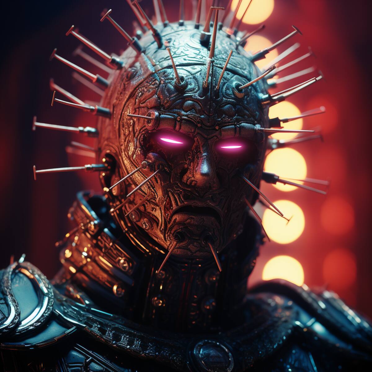 ¿Qué pasaría si combinamos a Pinhead con el cyberpunk? ¿Cómo sería su aspecto y su personalidad? ¿Qué tipo de tecnología usaría? ¿Qué papel tendría en un mundo dominado por las máquinas y la información? Estas son algunas de las preguntas que nos planteamos al crear el texto para Midjourney, la herramienta de inteligencia artificial que nos ha ayudado a generar la imagen que les presentamos a continuación.
