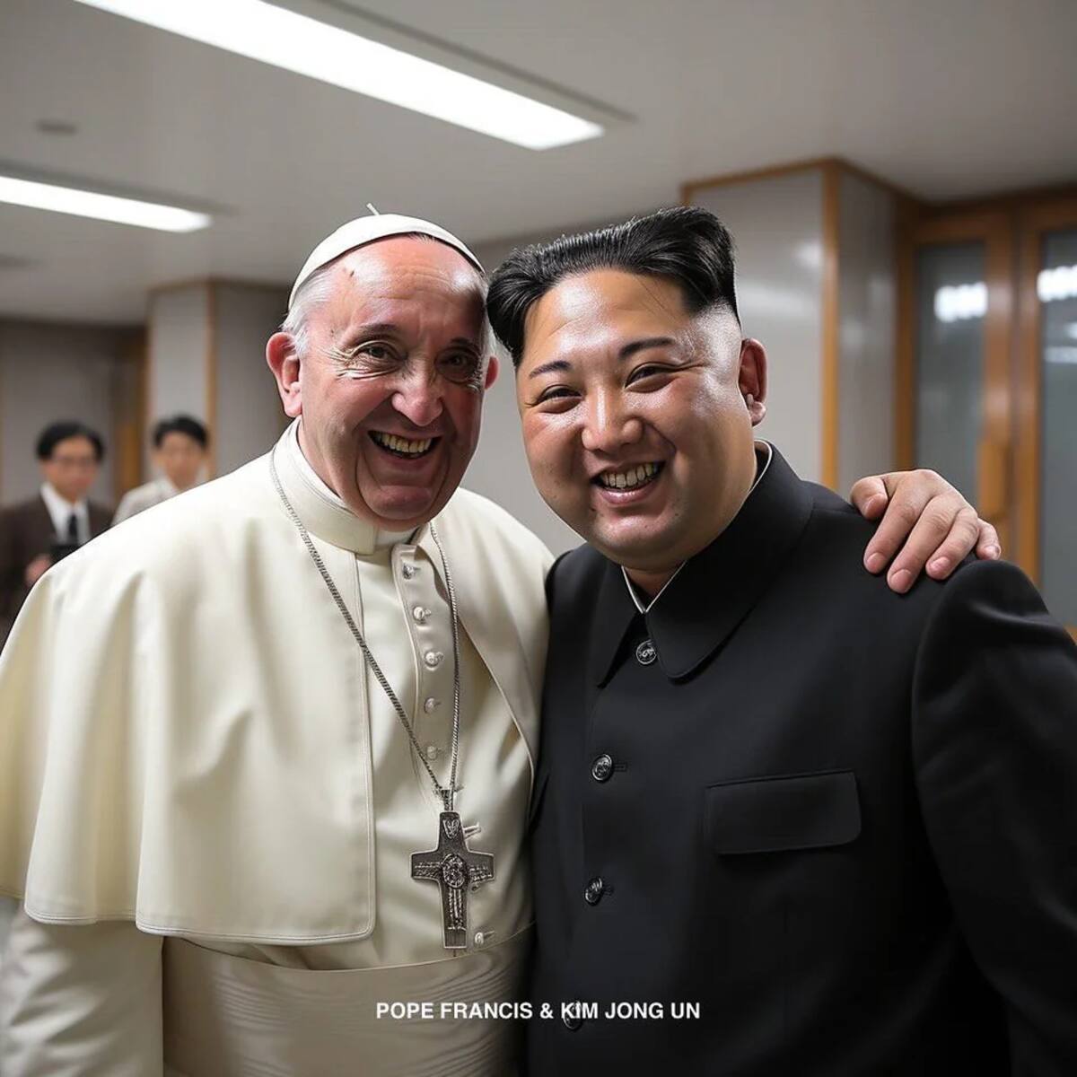 Los resultados nos muestran a figuras como el presidente ruso Vladimir Putin y al presidente de Ucrania, Volodymir Zalenski, estrechando manos amigablemente; al Papa Francisco y a Kim Jong Un posando sonrientes frente a las cámaras, entre muchas otras celebridades más.