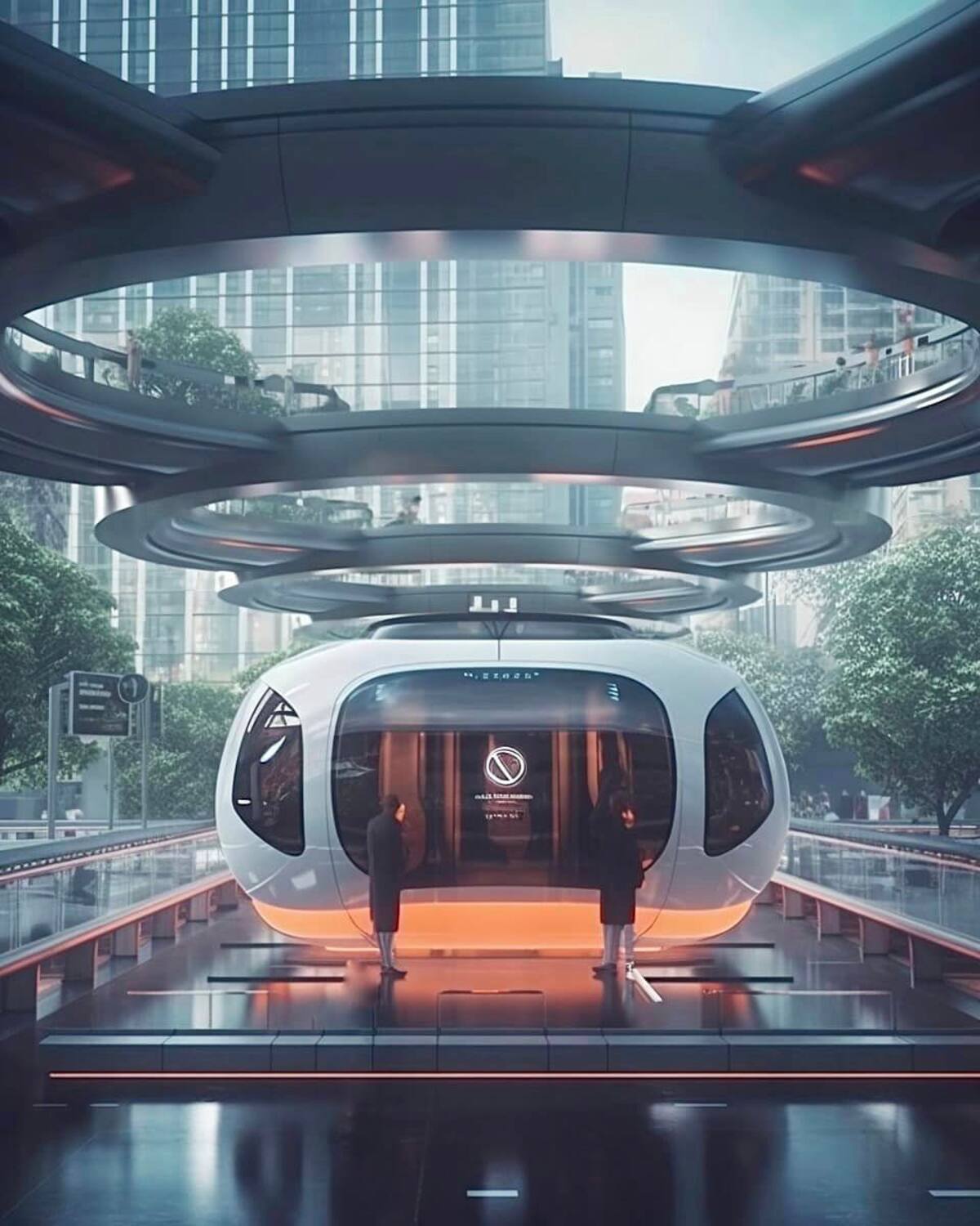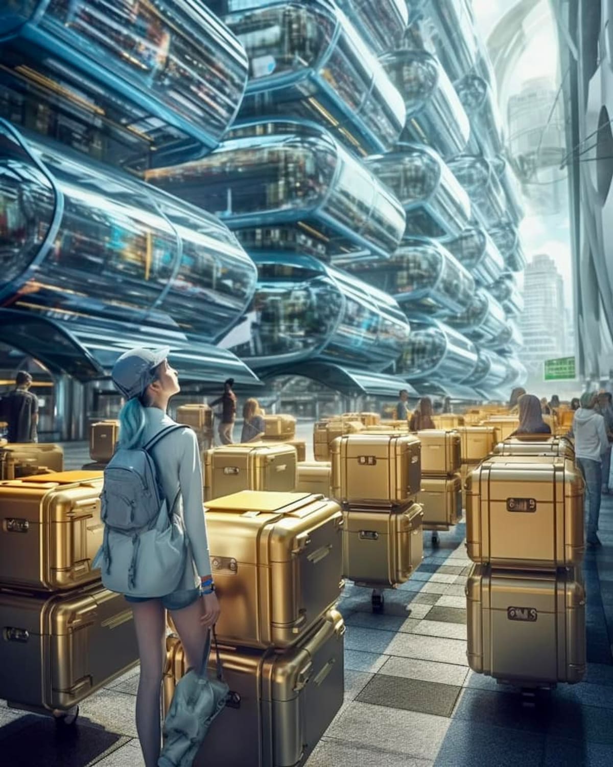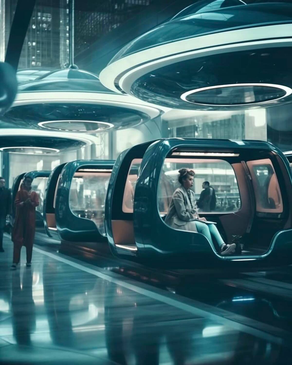 En estas imágenes futuristicas, la tecnología y las luces azuladas toman un papel predominante, así como grandes capsulas o cascos que encierran a las personas. Asimismo, el papel central en la antigravedad ciertamente es el transporte o donde vehículos como trenes y maletas son llevadas de un extremo al otro.