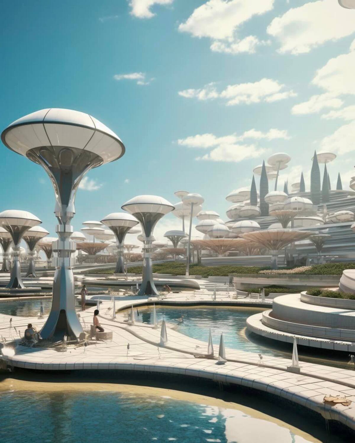 Con un total de 16 ilustraciones el usuario mostró cómo se vería, en la que podemos ver la predominancia de las plantas en simbiosis con la tecnología. Sin embargo, los edificios no parecen ser nada invasivos con el medio ambiente y la naturaleza.