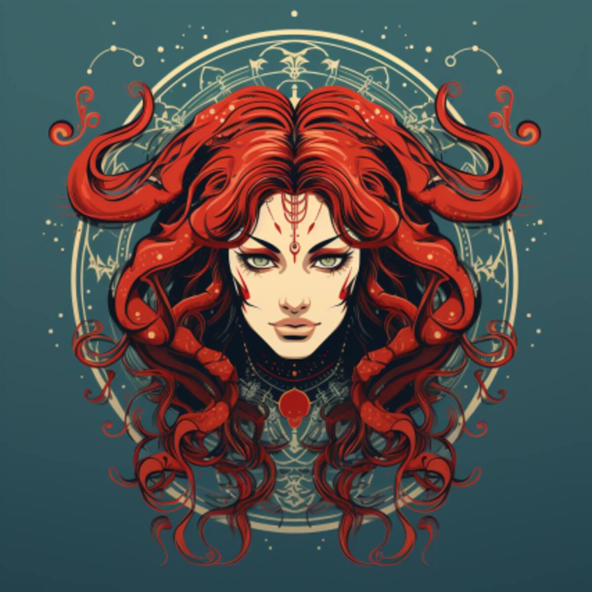 Como puedes ver, Scorpio es una demonio con unos cuernos rojos y cabello con cola de escopriones de un aguijón venenoso, que usa para atacar a sus enemigos. Su expresión es de desafío, y no le teme a nada ni a nadie.