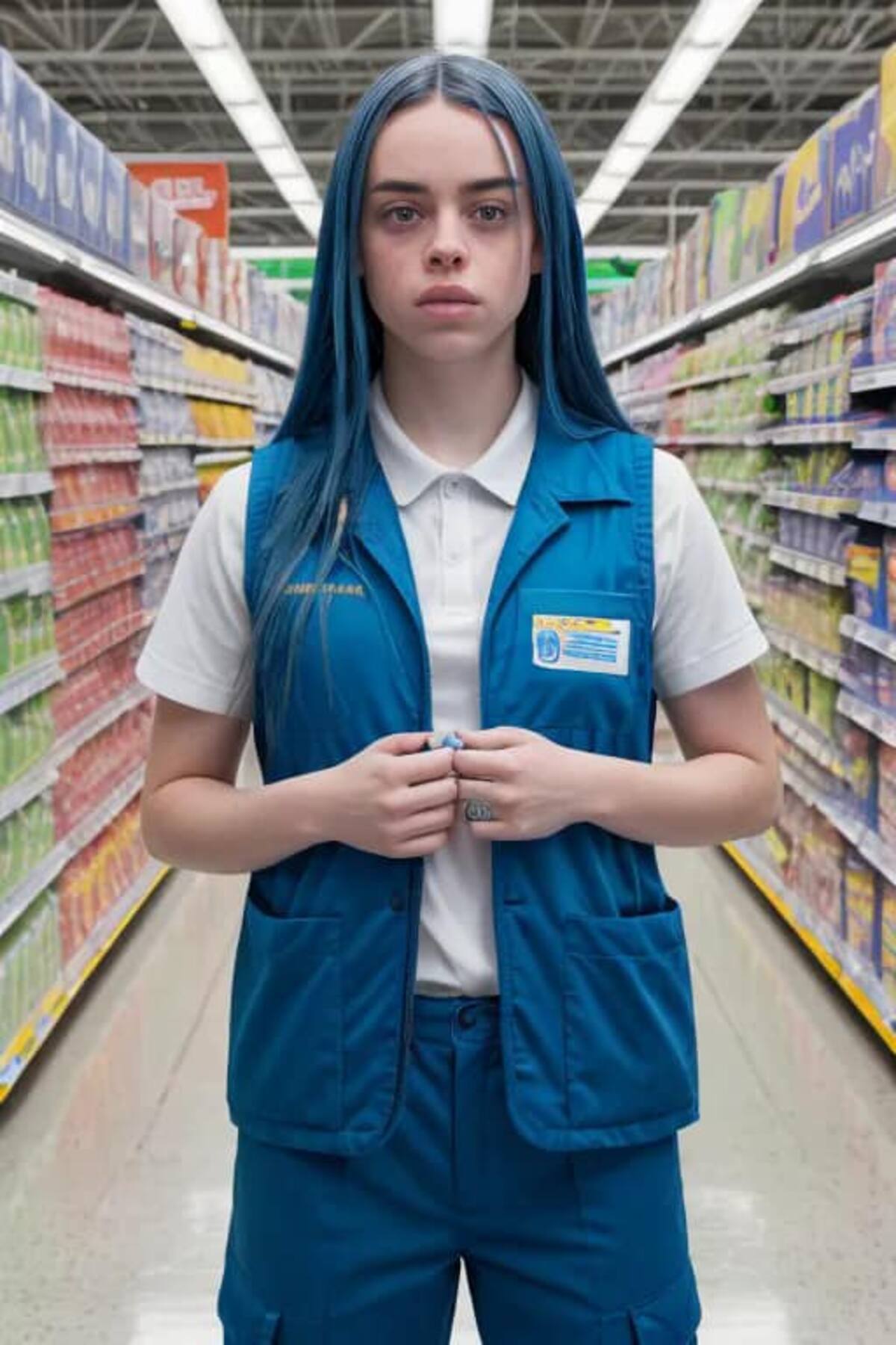 Así se verían las celebridades como empleados de Walmart según una IA.