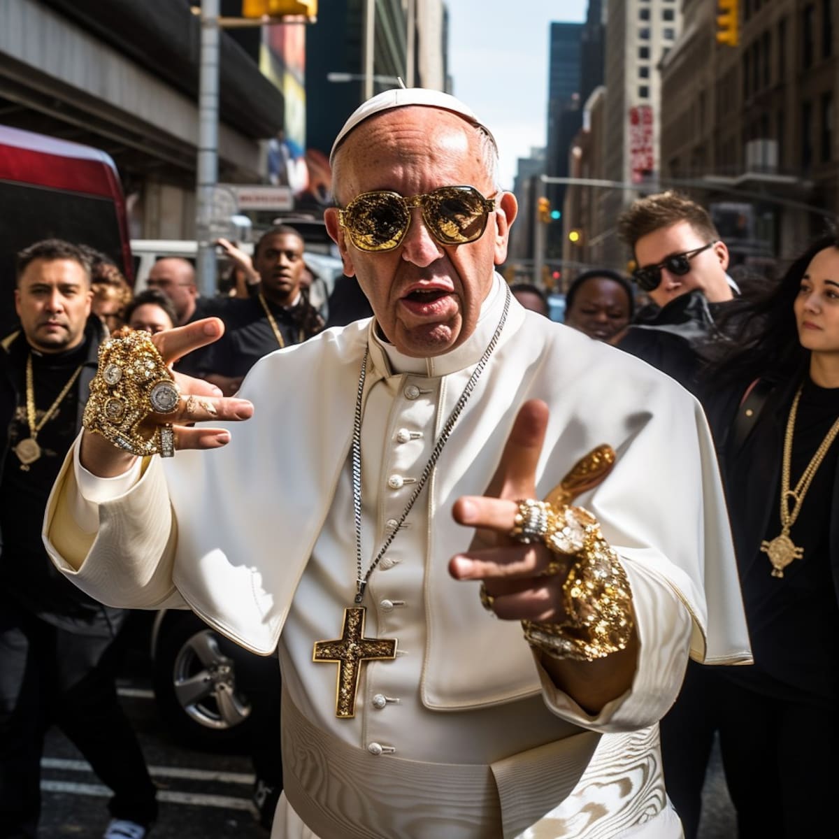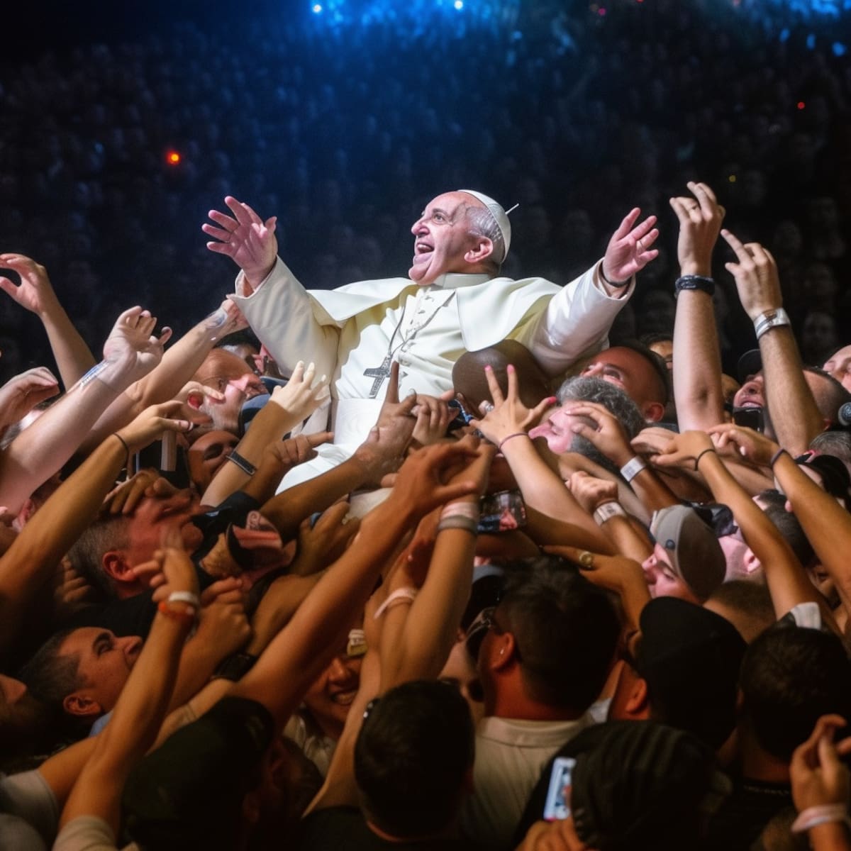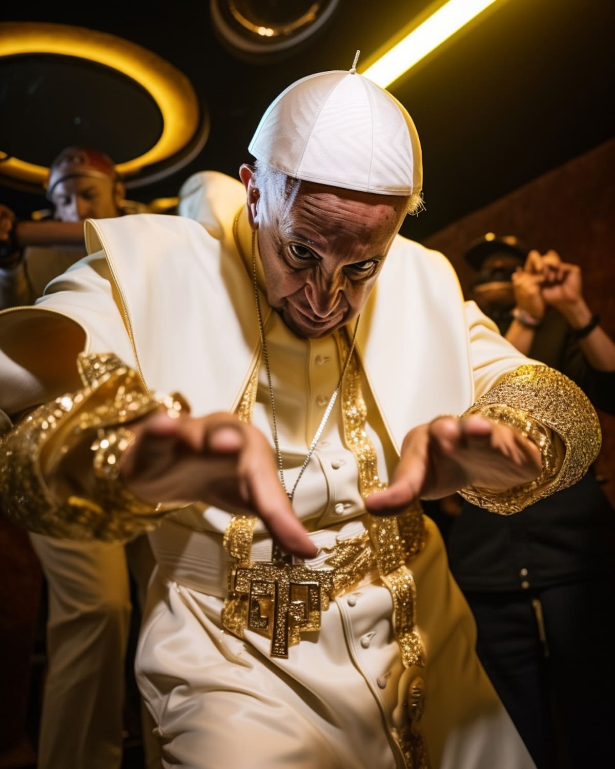 Con el uso de la inteligencia artificial de Midjourney y retoques de photoshop, un usuario re-imaginó al Papa Francisco bailando en un club; en esta serie de ilustraciones, que son más de 30 imágenes distintas, se muestra a la máxima autoridad eclesiástica católica como todo un rockstar.