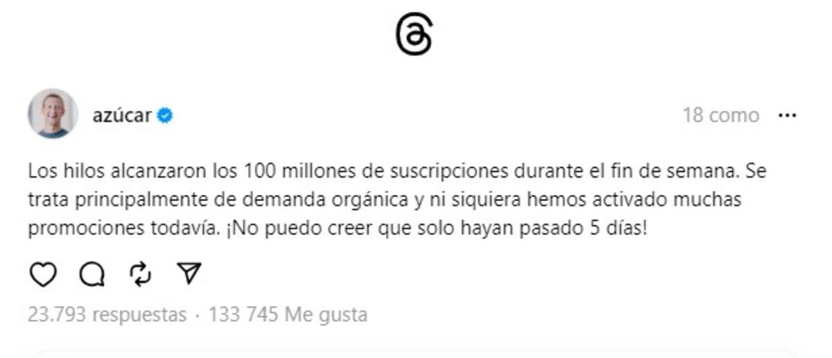 La función, diseñada para aumentar la participación en Threads, parece estar dando sus frutos, ya que el CEO de Meta, Mark Zuckerberg, anunciara que Threads cuenta con casi 100 millones de usuarios mensuales, un indicador positivo para la plataforma que lleva poco más de cuatro meses en el mercado.