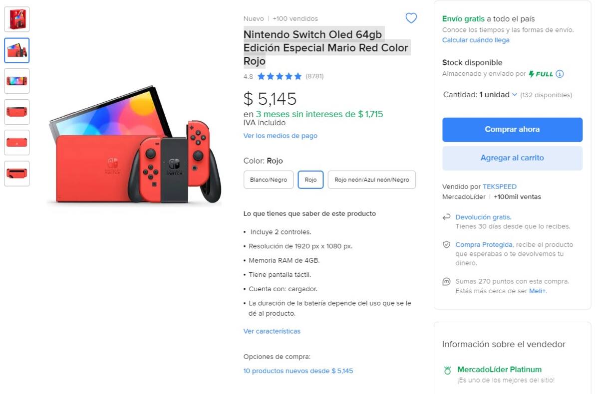 En esta ocasión te hablaremos de una oferta sumamente atractiva, pues se trata de una Nintendo Switch Oled (la versión preferida dada su pantalla vibrante y de alta definición) que además, se trata de una edición “especial” Mario Red, ofertón que hemos detectado en Mercado Libre.