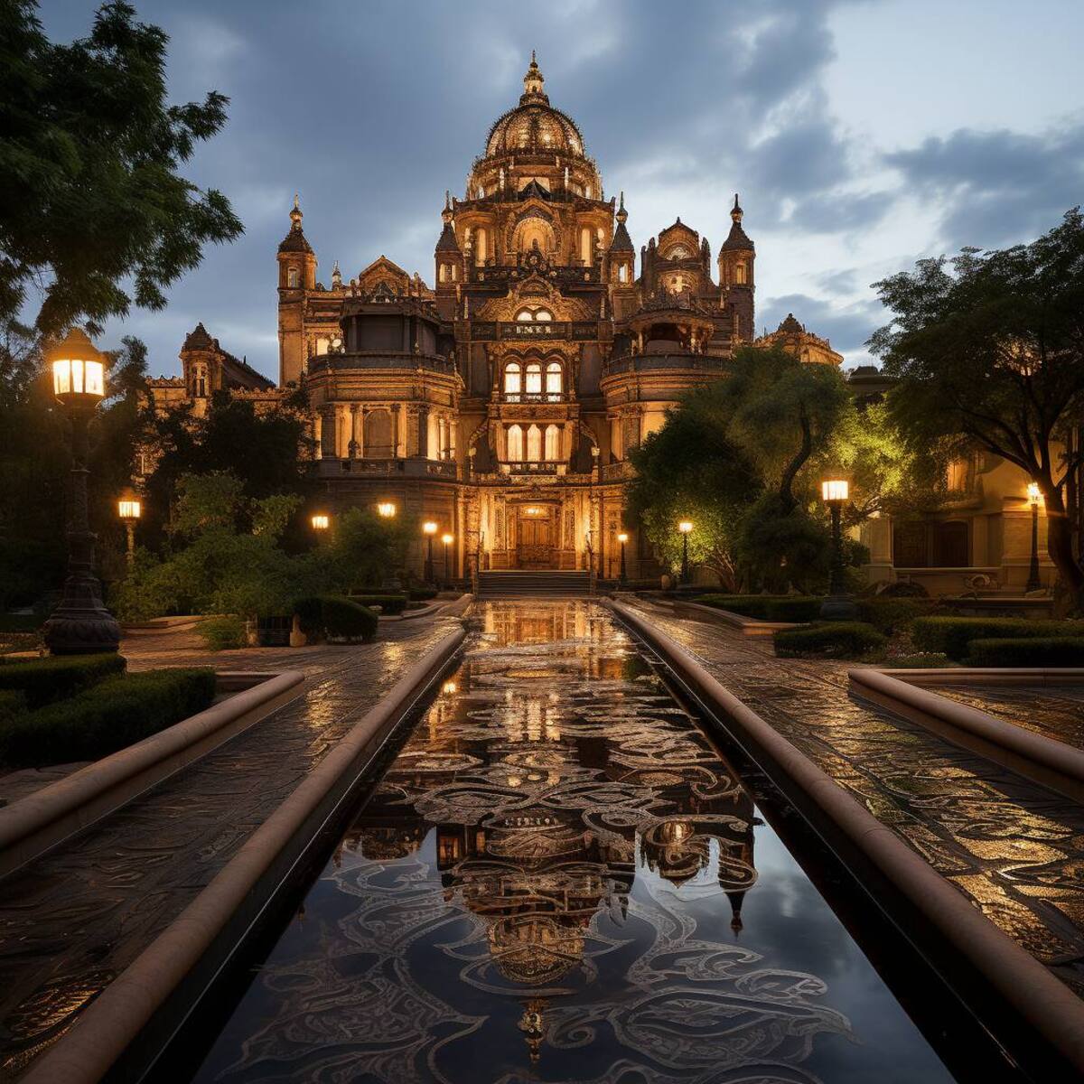 Usamos el bot generador de texto de ChatGPT que elaborara descripciones visuales de cómo podría verse México si fuese una monarquía hoy en día, y con los resultados, creamos las siguientes imágenes en el bot generador de imágenes de Midjourney, creando unas ilustraciones impactantes con un nivel de detalle impresionante: