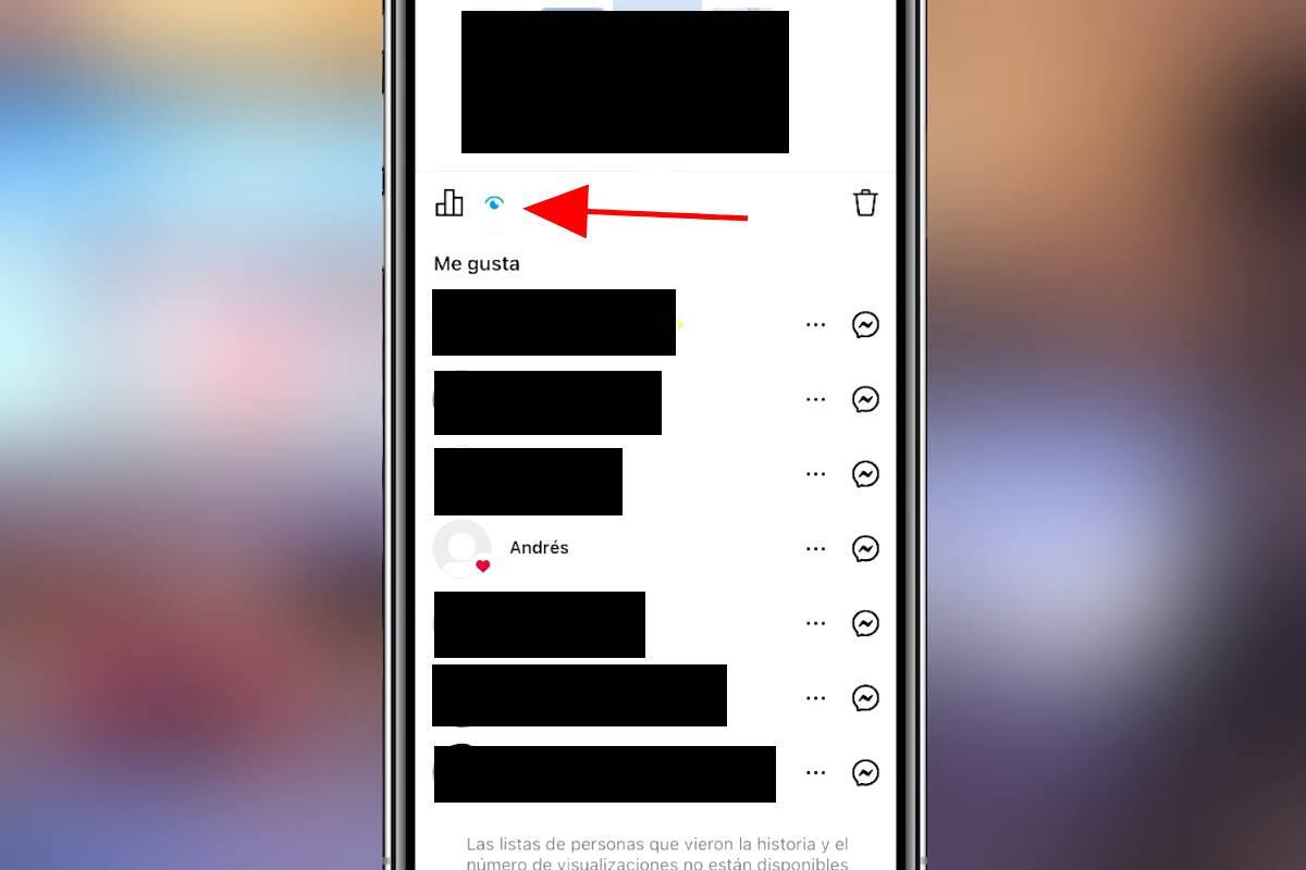 Dentro del “Archivo de historias”, selecciona cualquier historia de tu elección y presiona el botón de actividad. Aquí es donde un pequeño icono de un ojo te mostrará la lista de usuarios que han dado like a esa historia en particular.