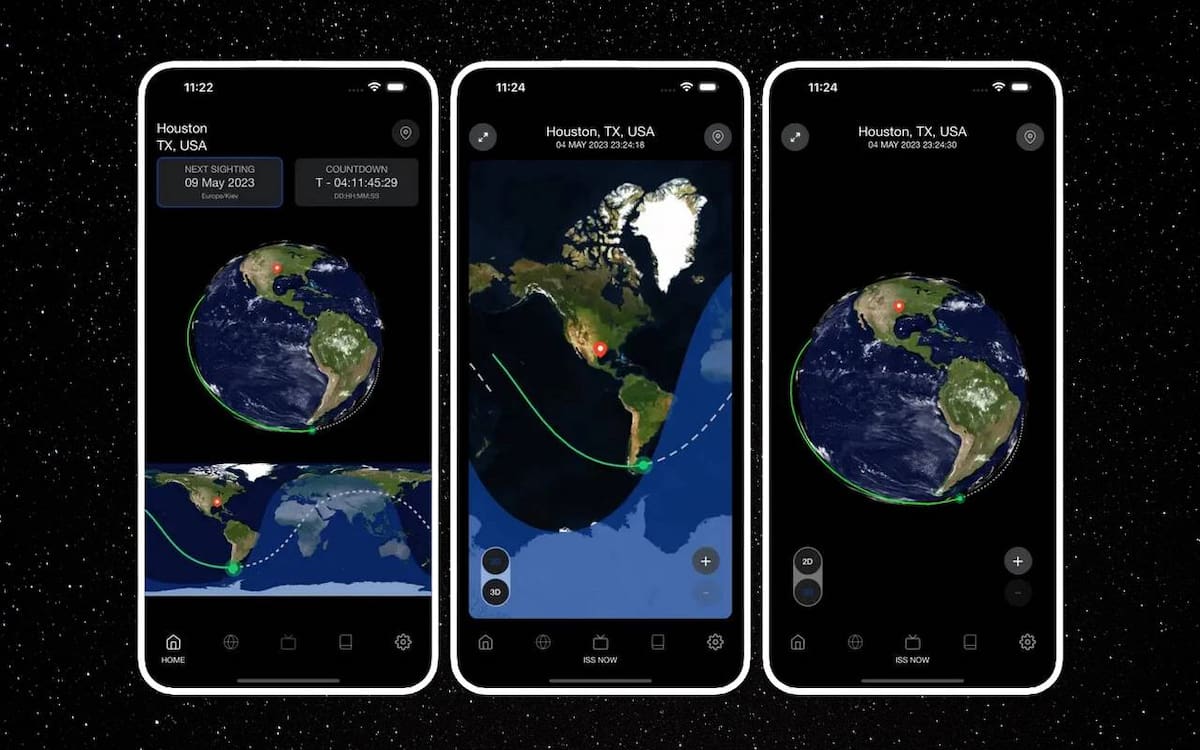 Esta aplicación te notifica cuando la estación está pasando sobre tu área y te ayuda a ubicarla utilizando la realidad aumentada.