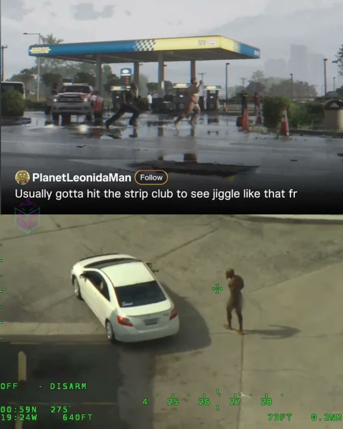 A continuación te compartimos algunas imágenes del tráiler que tienen su paralelo en hechos noticiosos reales de nuestro mundo, para que puedas admirar por cuenta propia el nivel de detalle y verosimilitud (o lo más alejado de esta) que el equipo de GTA VI ha planeado los últimos diez años: