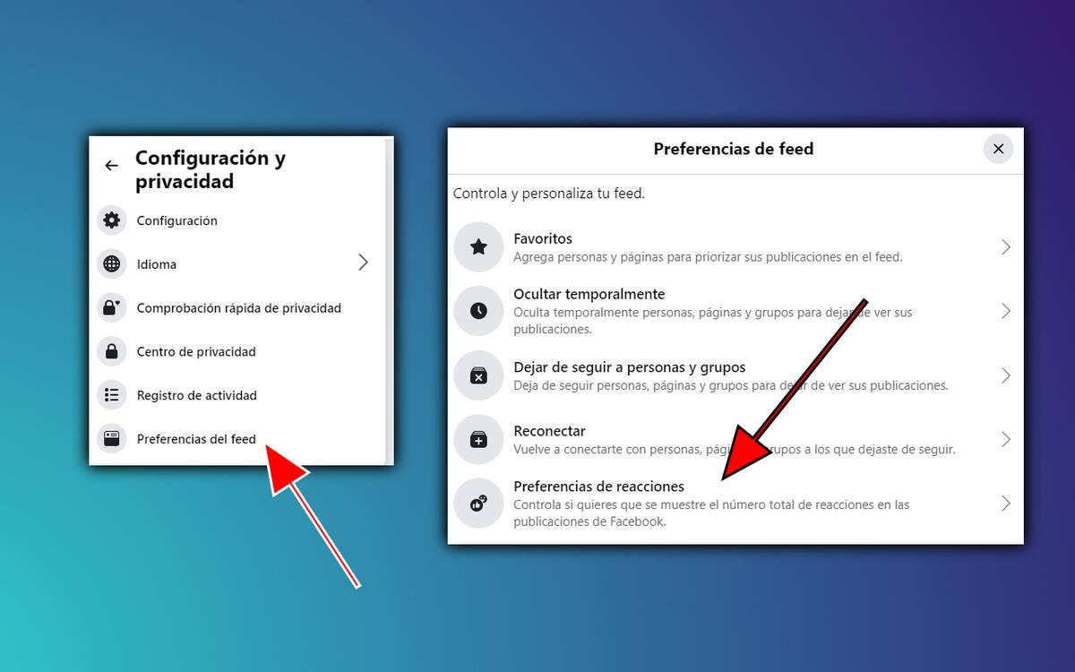 ¿Cómo hacerlo? En el sitio web, solo necesitas hacer clic en tu foto de perfil, dirigirte a “Configuración y Privacidad,” luego a “Preferencias del Feed” y, finalmente, a “Preferencias de Reacciones.”