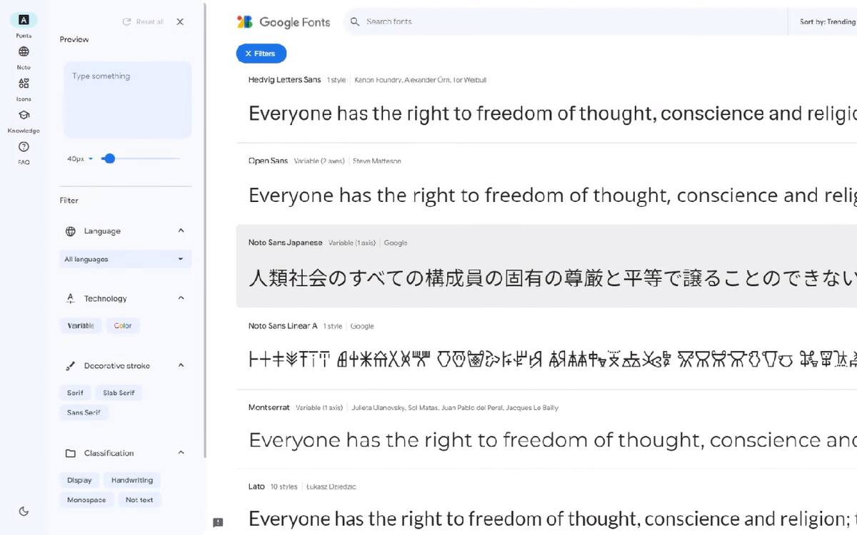 Para los amantes de la tipografía, Google ofrece una solución práctica con su amplia variedad de fuentes de código abierto en una página web simple y útil llamada Google Fonts.