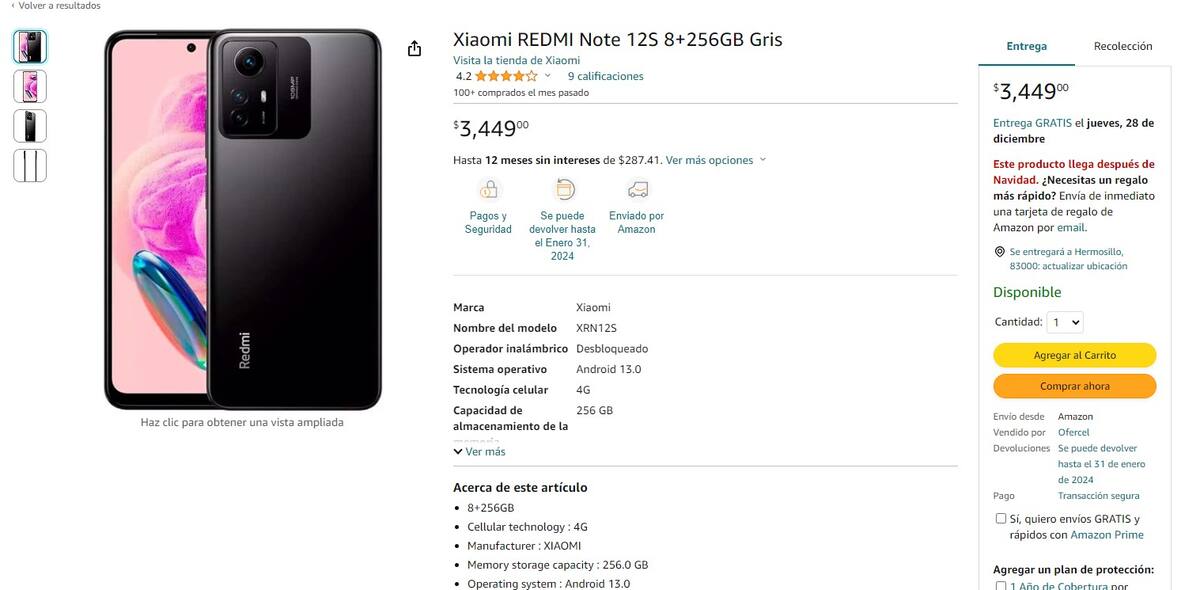 En esta ocasión, hemos detectado un smartphone Xiaomi REDMI Note 12S, uno de los más buscados en México de acuerdo a Google, por 3499 pesos.