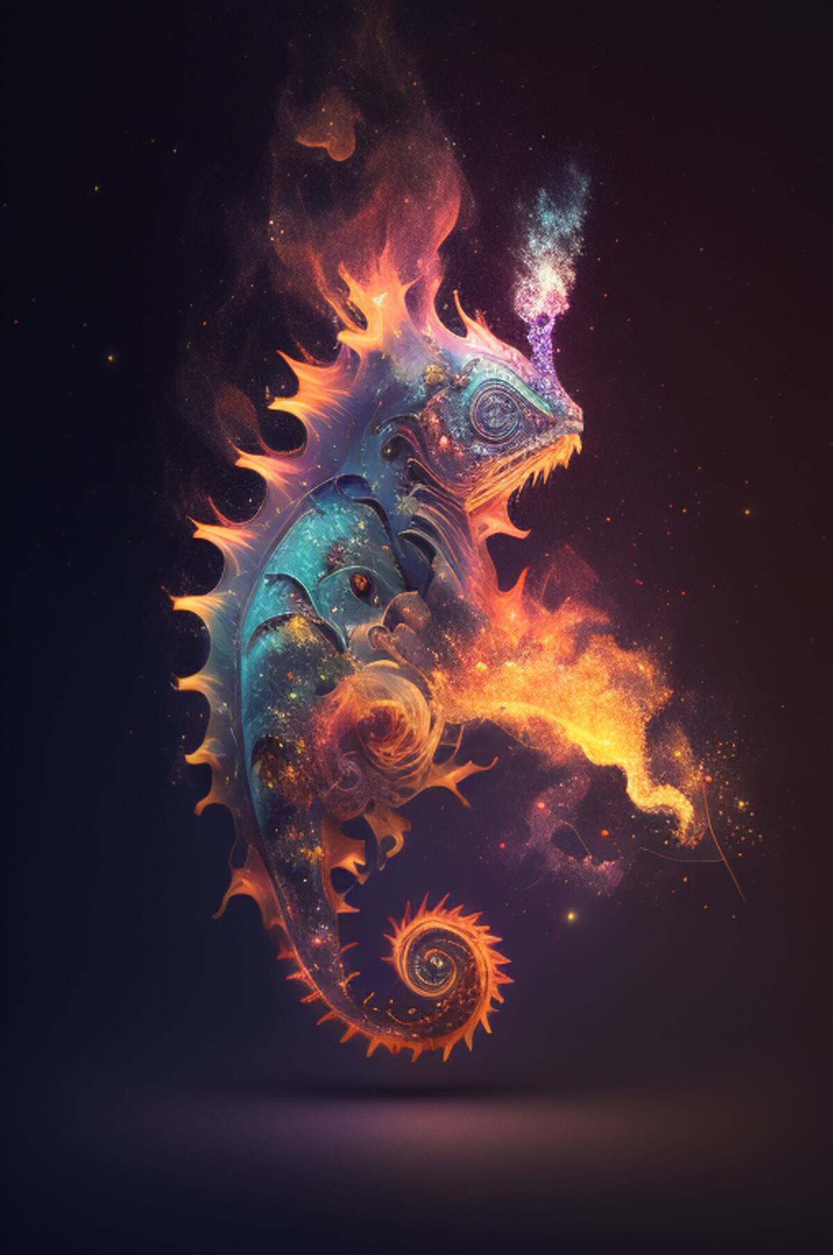 Dentro de esta indicación se incluyen los siguientes elementos: galaxias en espiral, espacio; nebulosa, rodeado de estrellas humo, gran detalle y la forma del animal que busques representar.